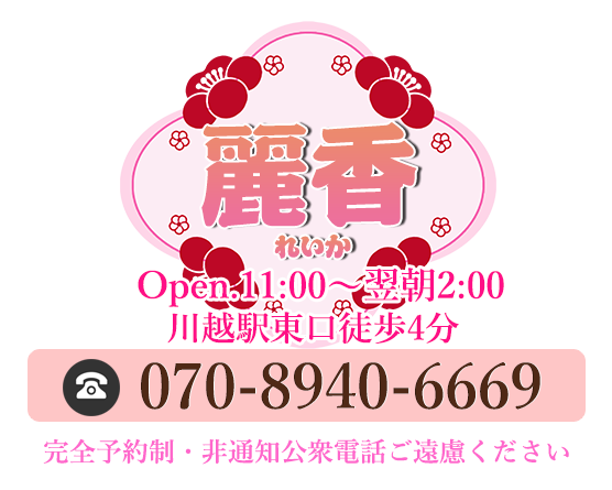 川越駅 完全予約制&完全個室でメンズエステ 麗香(れいか)です。